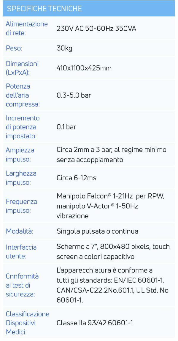 Il manipolo Falcon® offre un intervallo pressorio ampio da 0,3 a 5 bar, rendendo più confortevole l’esperienza del paziente e consentendo anche il trattamento della fascia e della colonna vertebrale.